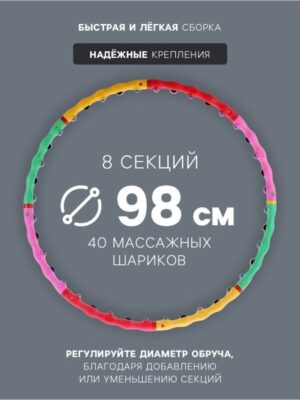 Обруч массажный ONLYTOP, d=98 см, разборный, разноцветный. Тренировки с массажным обручем улучшает физическую форму и общее состояние тела. Обруч укрепляет мышцы живота, спины и бедер, а также улучшает координацию и гибкость. Регулярные занятия способствуют снижению веса, формированию талии. Упражнения с обручем оказывают положительное воздействие на кровообращение и повышают общий тонус организма. Конструкция позволяет легко собирать и разбирать изделие. Это обеспечивает удобное хранение и транспортировку инвентаря. Диаметр: 98 см.