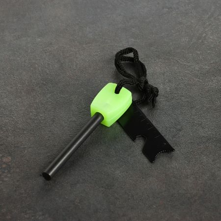 Огниво туристическое, светящееся в темноте, 10.5 см. Огниво — это приспособление для быстрого разведения огня, преимуществами которого являются его долговечность, возможность использования в любую погоду и устойчивость к физическому воздействию. Как пользоваться огнивом: <ul> 1. Подготовьте материал, который вы собираетесь поджечь (трут), например, тонкую бумагу, мох или сухое горючее.</ul> <ul> 2. Поднесите огниво к труту как можно ближе и сильным движением проведите кресалом по стержню огнива, чтобы создать искры.</ul> <ul> 3. Как только начинает тлеть или гореть трут, его надо раздуть и поднести к дровам.</ul>