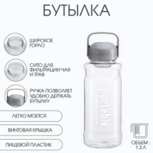 Бутылка для воды спортивная Portable, прозрачная, 1.3 л,. <