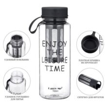 Бутылка для воды, 800 мл, 22×10.5 см, с ситом, черная.