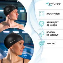 Шапочка для плавания взрослая ONLYTOP Swim, силиконовая
