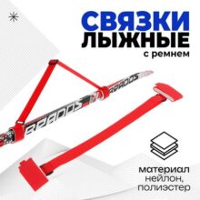 Связки для лыж с ремнем, цвет красный. Изделие предназначено