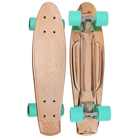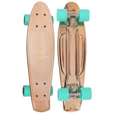 Пенниборд ONLYTOP, 56х15 см, колеса PU 60х45 мм, алюминиевая рама, цвет бронзовый. Компактный и маневренный пенниборд — отличный выбор для юных начинающих скейтбордистов. Предназначен для катания по городским улицам. Дека с ребристой поверхностью обеспечивает хорошее сцепление с подошвой обуви и не позволяет ногам скользить по доске. Материал деки изготовлен из пластика — это повышает уровень долговечности и устойчивости к влаге, поэтому пенниборд подходит для регулярной езды в любых погодных условиях. Колеса изготовлены из полиуретана — крепкого и износостойкого материала, который обеспечивает хорошую устойчивость на поверхности и позволяет кататься на плитке и брусчатке. Подшипники ABEC 7 обладают высокой точностью вращения и влагозащитой.