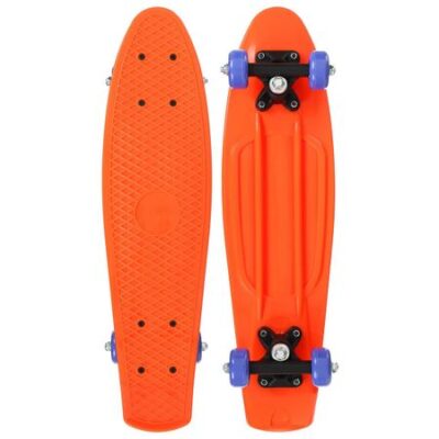Пенниборд ONLYTOP, 56х15 см, колеса PVC 50 мм, пластиковая рама, цвет оранжевый. Компактный и маневренный пенниборд — отличный выбор для юных начинающих скейтбордистов. Предназначен для катания по городским улицам. Дека с ребристой поверхностью обеспечивает хорошее сцепление с подошвой обуви и не позволяет ногам скользить по доске. Материал деки изготовлен из пластика — это повышает уровень долговечности и устойчивости к влаге, поэтому пенниборд подходит для регулярной езды в любых погодных условиях.