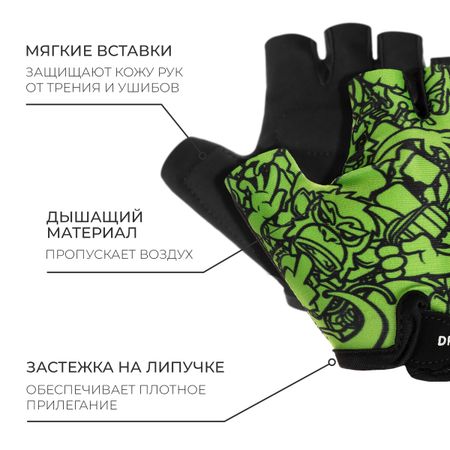 Перчатки велосипедные Dream Bike, детские, р. M, зеленые. Детские перчатки с мягкими вставками используются в качестве дополнительного средства безопасности. Они защищают кожу рук от трения и смягчают удары при падении. Обхват ладони: 17–18 см.