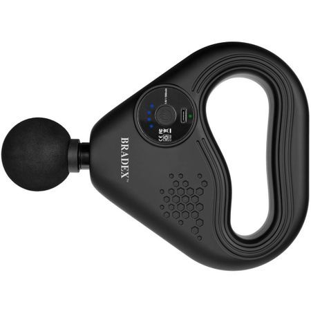 Bradex KZ 1426 — перкуссионный массажёр с массажной лентой. Проведение интенсивного ударного массажа снижает мышечные боли, снимает напряжение и усталость мышц, способствует ускоренному восстановлению организма после физических нагрузок. В комплект входят круглая универсальная насадка для ударно-волнового массажа крупных мышц и массажная лента, предназначенная для точечного массажа акупунктурных зон и глубокой проработки наиболее чувствительных зон тела. Особенности Ударно-волновой массаж Универсальная круглая насадка воздействует на тело ударно-волновыми движениями различной частоты, что сравнимо с ручными техниками массажа — разминаниями, постукиваниями, поглаживаниями и вибрацией Акупунктурная массажная лента Специальная конструкция массажной ленты создаёт вибрацию и позволяет ей проникать в глубокие слои мышечной ткани. Она очень удобна в использовании на труднодоступных участках тела, таких как спина и задняя поверхность бёдер, может легко подстраиваться под особенности каждого конкретного проблемного участка. Благодаря большому количеству колебаний, массажная лента проводит локальный микромассаж нужной зоны. Ткани в этой зоне получают лучшее кровоснабжение, ускоряется лимфоток и улучшается питание клеток кислородом. Также усиливаются обменные процессы в тканях, что позитивно сказывается на их здоровье и общем состоянии. Таким образом, акупунктурная лента может использоваться, как средство усиления терапевтического эффекта от массажа Простое управление Включение, выключение массажёра и переключение режимов интенсивности массажа осуществляется одной кнопкой. 4 уровня интенсивности позволяют комфортно настроить режим массажа. Автоматический таймер работы массажёра — 10 минут Работа от аккумулятора Важным преимуществом этого массажного пистолета является его портативность и лёгкость в использовании. Беспроводной массажёр работает от аккумулятора и заряжается от USB-кабеля, поэтому его можно взять с собой в спортзал или на работу и использовать в любое время и в любых условиях