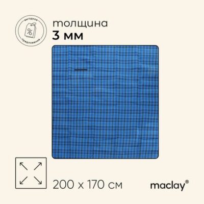 Плед для пикника Maclay, цвет синий. Коврик предназначен для походов и кемпингов, также его можно взять с собой на пляж. Выполнен из оксфорда. Размеры <ul> <li> Длина — 200 см.</li> <li> Ширина — 170 см.</li> <li> Толщина — 0.3 см.</li> </ul>