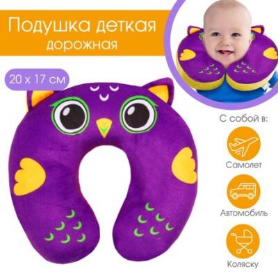 Подушка дорожная детская для путешествий «Совушка», рогалик, Крошка Я. Дорожная подушка имеет анатомическую форму с углублением в центральной части и мягкими лапками для поддержки головы ребенка. Аксессуар снимает напряжение с мышц шеи во время длительного сидения и дарит комфортный сон маленькому пассажиру.