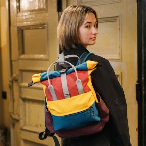 Объем рюкзака регулируется за счет закручивающейся верхней. Верх закрывается на молнию