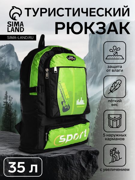 Рюкзак туристический, 35 литров, с увеличением, с карманами, Guitar, черный/зеленый. Туристический рюкзак объемом 35 литров с возможностью увеличения пространства. Первоклассный выбор для длительных путешествий и походов. Сделан из прочного текстиля, с уплотненной спинкой для комфортной носки. <ul> <li> Эргономичность: Уплотненная спинка обеспечивает комфорт даже при длительном ношении.</li> <li> Долговечность: Высококачественный текстиль устоит перед любыми погодными условиями.</li> <li> Удобные карманы: Легкий доступ к необходимым вещам в любое время.</li> <li> Гибкость использования: Вместительный объем в 35 литров с возможностью увеличения пространства.</li> <li> Специальная фурнитура: Надежные молнии и застежки продлят срок службы рюкзака.</li> <li> Дышащий материал спинки: Обеспечивает вентиляцию и комфорт даже в жаркие дни.</li> <li> Весовое распределение: Специальные ремни переносят нагрузку на плечи, снижая усталость.</li> <li> Стильный дизайн: Черно-зеленая гамма подходит как для путешествий, так и для повседневного использования.</li> </ul>