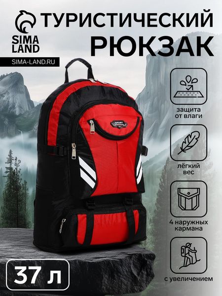 Рюкзак туристический 37 литров, с карманами, с увеличением, красный