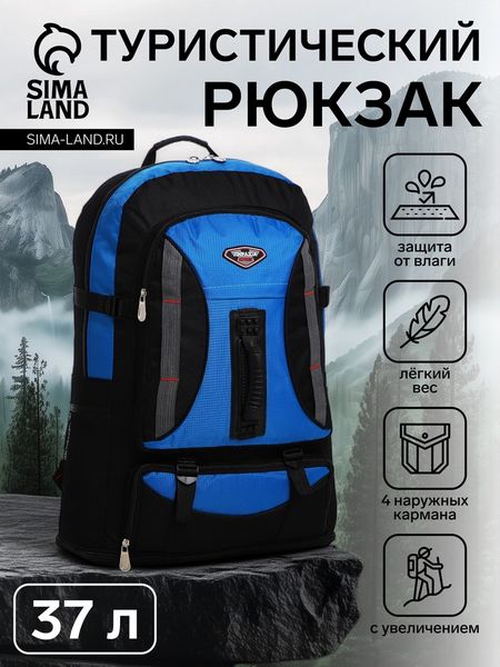 Рюкзак туристический 37 литров, с увеличением, с карманами, синий