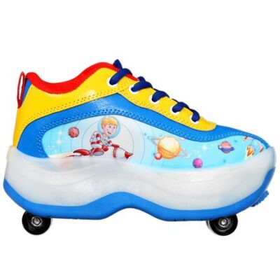 Роликовые кроссовки, р. 30, колеса PVC. Роликовые кроссовки предназначены для ходьбы и катания по ровной поверхности во время прогулок. Колесики расположены под носком и пяткой, обеспечивают устойчивость и маневренность. Противоударная насадка на носке обуви предназначена для защиты ног при отталкивании от поверхности.