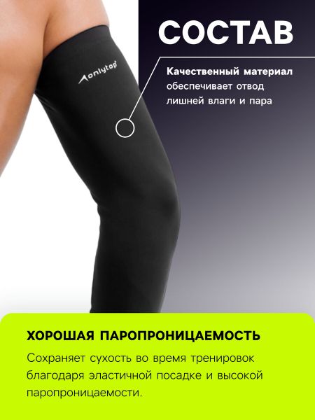 Рукав спортивный компрессионный ONLYTOP, р. XXL, цвет черный. Рукав подходит для занятий спортом на улице и в спортзале. Предназначен для защиты от вывихов, травм и растяжений. Обладает компрессионными свойствами, улучшает циркуляцию крови и объем поступления кислорода, уменьшает напряжение и сохраняет тепло в мышцах. Также изделие обеспечивает надежное скрытие и защиту кожи рук от УФ-излучения во время тренировок на открытом воздухе.
