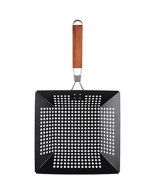 Complete your outdoor barbecue set up by adding SABORR Steel BBQ Grill Pan, BXL0917A Made of sturdy material that assures longevity even after prolonged use and the non-stick surface prevents food from sticking to the bottom of the pan Soft touch handle of the tool provides a firm grip while holding the pan Perforated design ensures even distribution of heat in the grilling skillet to enhance the natural flavors of your food Hanging loop on the handle of the tool allows for easy storage and does not occupy much space. Key Features The proper distribution of holes in the grilling skillet enhances the natural flavours of your food. This non-stick pan is easy to use, clean, and maintain. It features a convenient foldable wooden handle that is easy to store. The wooden handle is not only durable but also prevents scalding.