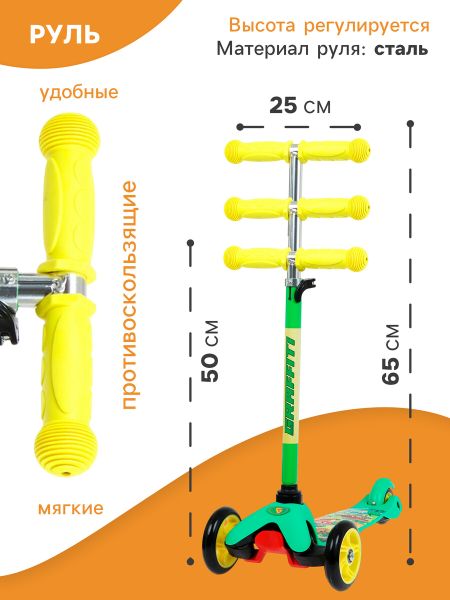 Самокат GRAFFITI «В лесу», колеса PU 110/80 мм, ABEC 7, цвет зеленый. Самокат предназначен для детей от 3 лет. Подходит для обучения ребенка навыкам балансировки и равновесия. Колеса изготовлены из полиуретана, что повышает стойкость к коррозии и износу, имеют высокие показатели грузоподъемности и их невозможно проколоть. Дека изготовлена из пластика — это повышает уровень долговечности и устойчивости к влаге. Подшипник ABEC 7 — используются опытными райдерами, обладают высокой точностью вращения и влагозащитой. Характеристики <ul> <li> Количество колес: 3</li> <li> Высота руля: 54,5-64,5 см</li> <li> Максимальная нагрузка: 40 кг</li> <li> Размер платформы: 30 х 11 см</li> <li> Ширина руля: 24 см</li> <li> Диаметр колеса: 110, 80 мм</li> <li> Ножной тормоз</li> </ul>