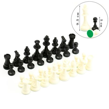 Фигуры шахматные турнирные (32 шт) изготовлены из высококачественного пластика и приятны на ощупь.Подходят для досок с размером клетки от 4.8 x 4.8 см до 5.8 x 5.8 см.
