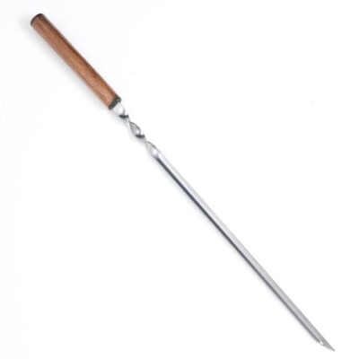 Шампур уголок, с деревянной ручкой «Эко» рабочая часть — 35 см, 58×1.2 см, сталь 1.5 мм. <b> Шампур-уголок "Эко"</b> – удобный и надежный инструмент для приготовления мяса на мангале. Рабочая часть шампура выполнена из нержавеющей стали толщиной 1,5 мм. Деревянная ручка обеспечивает удобство использования при переворачивании мяса. Шампур-уголок имеет форму, которая позволяет надежно удерживать мясо, не давая ему соскальзывать, также подходит для приготовления овощей и других продуктов. Шампур-уголок легко моется и не требует особого ухода. Он станет незаменимым помощником для любителей барбекю и пикников.
