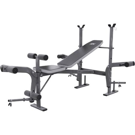 Скамья для жима со стойками под штангу DFC D703 — идеальный выбор для домашних тренировок. Благодаря возможности регулировки спинки на 3 уровня, этот тренажёр подойдёт для пользователей с разным ростом и уровнем физической подготовки. Особенности Комфортное использование Максимальная нагрузка на стойки составляет 100 кг а расстояние между ними 46 см. Высота стоек составляет 110 см, что обеспечивает удобство при выполнении упражнений Нагрузка Общая нагрузка на тренажёр не должна превышать 180 кг, включая вес пользователя и грузовые пластины. Нагрузка на рычаг для валиков может достигать 80 кг, а на ручной рычаг — 40 кг Спинка Размер спинки равен 74.5х28х4 см, а размер сиденья 30х28х4 см, что обеспечивает комфортное положение во время тренировки
