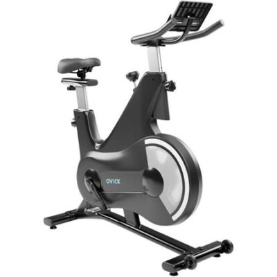 Спин-байк DFC Ovicx B-Q210 — отличный вариант для тех, кто желает проводить качественные кардио-тренировки прямо у себя дома, имитируя катание на настоящем велосипеде. Тренировки на спин-байке помогают укрепить ноги, ягодицы и живот, улучшить кардиореспираторную систему и сбросить вес. Особенности Универсальный тренажёр Велотренажёр выдерживает вес до 150 кг и подходит для пользователей ростом от 150 до 190 см. Инерционный вес маховика 15 кг гарантирует плавное движение и настройку степени нагрузки. Обёрнутый вокруг маховика ремень обеспечивает минимальный уровень шума, что делает тренажёр кардио оптимальным вариантом для использования дома. Для того, чтобы разнообразить свои тренировки, подключайтесь к приложению OVICX APP Регулировка На тренажёре для ног можно регулировать сиденье по высоте и по горизонтали, что даёт возможность настраивать положение тела на сиденье. Регулируемые педали велотренажёра для ног предотвращают проскальзывание, что позволяет получить больше контроля во время езды Удобство и безопасность Профессиональный руль велотренажёра с разными видами хвата и покрытием, устойчивым к скольжению и поту, гарантирует удобство и безопасность в процессе тренировки. Регулировка руля по высоте даёт дополнительное удобство и разнообразие. Транспортировочные ролики помогают быстро и с лёгкостью перемещать тренажёр в нужное для вас место, а подставка под планшет и держатель для бутылки сделают ваши тренировки ещё более комфортными