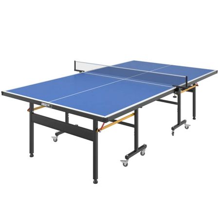 Всепогодный полупрофессиональный стол для настольного тенниса UNIX Line Outdoor SMC разработан специально для использования на площадках под открытым небом. Теннисный стол состоит из двух независимых половинок с технологией складывания Compact. Удобное складывание и жёсткая фиксация столешницы позволяют играть одному. Особенности Столешница с антибликовым покрытием Столешница изготовлена из SMС-панели с антибликовым покрытием и выдерживает многочисленные нагрузки, обладает хорошей устойчивостью к ударам, воздействию окружающей среды, влаге и температурным перепадам. Она не является горючим материалом, и за счёт высокой плотности и толщины 14 мм обеспечивает великолепный отскок мяча во время игры Металлическая рама Металлическая рама теннисного стола имеет толщину стали 1.4 мм, размеры профилей составляют 20х40 и 40х40 мм. Благодаря таким характеристикам конструкции, теннисный стол сохраняет жёсткость и устойчивость на любых покрытиях. Опоры стола оборудованы компенсаторами неровности Манёвренные колёса Для комфортного перемещения теннисный стол имеет 8 прорезиненных колёс диаметром 75 мм с подшипниками. Все колёса манёвренные и обладают высокой износостойкостью, 4 из них оборудованы фиксаторами Комплектация Сетка из нейлона с надёжными фиксаторами, а также набор для игры в настольный теннис: 2 ракетки, 3 шарика в сумке, поставляются в комплекте со столом