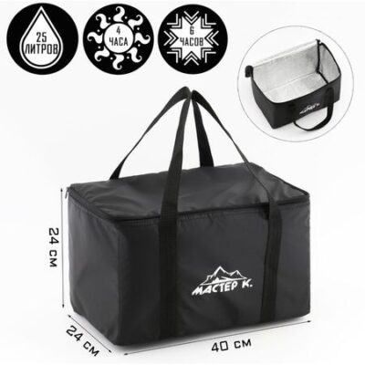 Термосумка для завтраков, обедов, объёмом 25 литров, отлично подойдет для школы, работы, пикников и путешествий. Изотермические свойства термосумки улучшаются с применением аккумуляторов холода. Снабжена откидной крышкой на молнии и ручкой для переноски. Она будет не менее эффективной, чем объемный ланч-бокс, и сохранит блюда свежими. Предназначена для хранения и транспортировки горячих и охлажденных продуктов.Особенности:Прочная и практичная в уходе внешняя ткань-Нейлон 420Внутренний отражающий слой с антибактериальным покрытием абсолютно герметичен