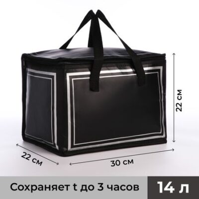 Термосумка на молнии, 14 л, цвет черный/серый. Термосумка на молнии, объемом 14 литров, идеально подходит для транспортировки и хранения продуктов в свежем виде вне зависимости от местоположения. Выполнена в элегантных черно-серых тонах, имеет средний размер, а также удобную форму сундучка для комфортного использования. <b> Преимущества</b> <ul> <li> Идеальна для пикников, путешествий и работы: сохранение температуры еды вопреки условиям на улице;</li> <li> Эргономичный дизайн: удобно носить благодаря прочной ручке и компактным габаритам;</li> <li> Высокая долговечность: материалы устойчивы к износу;</li> <li> Отличная теплоизоляция: плотно прилегающая молния не пропускает воздух;</li> <li> Универсальная модель: подходит как для рабочих завтраков, так и для отдыха на природе;</li> <li> Экономия пространства: складывается для удобного хранения в шкафу;</li> </ul> Незаменимый помощник для любителей активного образа жизни. Надежная, удобная и доступная по цене — этот выбор оптимален для тех, кто ценит функциональность и комфорт. Инвестируйте в практичное решение, которое обеспечит свежесть ваших блюд в любое время и в любом месте.