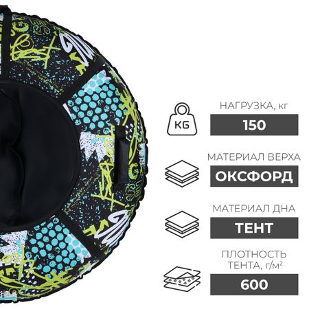 Тюбинг — ватрушка Winter Star Active life, диаметр чехла 120 см, цвет синий. Дно тюбинга изготовлено из тентовой ткани плотностью 600 г/м², что гарантирует долгий срок службы и обеспечивает отличное скольжение. Снаряд оснащен безопасными ручками. Для тюбинга подойдет камера 16 дюймов. Предназначен для детей от 12 лет. <b> Особенности</b> <ul> <li> Буксировочный трос для комфортного катания и транспортировки тюбинга.</li> <li> Материал верха: оксфорд с влагозащитным покрытием 420 ден.</li> <li> Материал дна: тентовая ткань плотностью 600 г/м².</li> <li> Камера в комплекте.</li> <li> Чехол: 120 см.</li> <li> Размер тюбинга в накачанном виде составляет ориентировочно 110 см (в зависимости от степени накачивания).</li> <li> Максимальная нагрузка: 150 кг.</li> <li> Максимальная температура эксплуатации (при соблюдении атмосферного давления внутри камеры): до –35 °С.</li> </ul> <b> Рекомендации по эксплуатации:</b> <ul> <li> Накачивайте тюбинг при положительной температуре.</li> <li> Для накачивания камеры используйте ножной или электрический автомобильный насос.</li> <li> В наполненной воздухом камере допускается образование грыжи с какой-либо стороны (грыжи появляются на 95 % камер). В этом случае приспустите камеру, передвиньте место вздутия в заднюю часть тюбинга симметрично оси движения и повторно накачайте камеру.</li> <li> После использования сдуйте и просушите тюбинг.</li> <li> Храните чехол и камеру отдельно друг от друга в темном помещении при температуре 2–25 °С и влажности 45–70 %. Камеру храните в сложенном состоянии, чехол в развернутом виде.</li> <li> После использования на холоде частично или полностью выпустите воздух из камеры через ниппель. Это необходимо для предотвращения повреждения камеры из-за расширения воздуха при нагреве в теплом помещении.</li> </ul> <b> Требования по безопасности:</b> <ul> Запрещается: <li> кататься с трамплинов и по снежной или ледяной поверхности с выступающими камнями или другими препятствиями. Тюбинг не оборудован тормозным устройством;</li> <li> привязывать тюбинг к транспортным средствам – квадроциклам, снегоходам, автомобилям и др.;</li> <li> пользоваться тюбингом на всех других покрытиях кроме снежных;</li> <li> не предназначен для детей младше 3-х лет.</li> </ul>