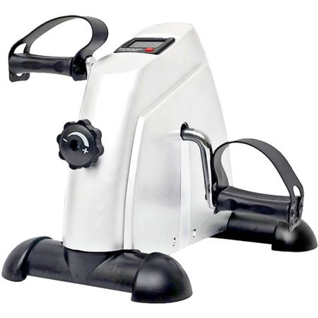 Основные характеристики- Вид тренажёра: мини — Тип нагрузки: ременная — Максимальный вес пользователя: 100 кг — Цвет: белый Управление- Управление: электромеханическое — Переключатели: поворотные, кнопочные — Дисплей: LCD — Регулировка сопротивления: да — Питание дисплея: 1 батарейка ААА Индикация- Индикация продолжительности тренировки: да — Индикация расхода калорий: да — Индикация дистанции: да — Дополнительная индикация: число шагов за текущую тренировку, общее число шагов за все тренировки Особенности- Педали: с фиксирующими ремнями — Дополнительная информация: возможность тренировки рук Комплектация- Инструкция: да Размеры и вес- Высота: 31 см — Ширина: 40.5 см — Длина: 37 см — Вес: 4.15 кг