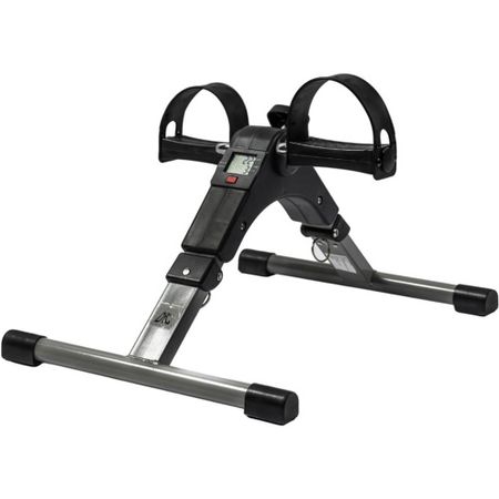 Основные характеристики- Вид тренажёра: мини — Тип нагрузки: трубочная — Максимальный вес пользователя: 100 кг — Цвет: чёрный Управление- Управление: электромеханическое — Переключатели: поворотные, кнопочные — Дисплей: LCD — Регулировка сопротивления: да — Питание дисплея: 1 батарейка ААА Индикация- Индикация продолжительности тренировки: да — Индикация расхода калорий: да — Индикация оборотов в минутах: да — Дополнительная индикация: число шагов за текущую тренировку Особенности- Складная конструкция: да — Педали: с фиксирующими ремнями — Дополнительная информация: возможность тренировки рук Комплектация- Инструкция: да Размеры и вес- Высота: 28 см — Ширина: 35.7 см — Длина: 49.5 см — Вес: 2.4 кг