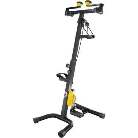Многофункциональная модель DFC B815Y Dual Bike позволяет тренировать как руки, так и ноги одновременно или врозь. Максимальный вес пользователя до 100 кг. Особенности li>Система нагрузки Велотренажёр двойной DFC B815Y Dual Bike с накладками и ручками жёлтого цвета имеет трубчатую механическую системой нагрузки Комфортное использование Ручки тренажёра регулируются по горизонтали. Высота регулируется от 86 до 98 см в 8-ми положениях Компактная конструкция Конструкция велотренажёра складная. Длина эспандеров 70 см, а профиль рамы толщиной 1.2 мм Безопасность Педали с регулируемыми ремешками на липучках. На ножках расположены резиновые накладки для защиты от скольжения и царапания поверхности пола, а также компенсаторы неровности пола