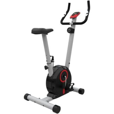 Велотренажер DFC B85001BR серо-красного цвета — для тех, кто хочет заниматься спортом в домашних условиях. Вертикальный велотренажер предназначен для тренировки ног и ягодиц, а также для улучшения кровообращения. Он имеет максимальный вес пользователя до 100 килограммов и оснащен маховиком весом 4 килограмма. Особенности Функциональность Система нагрузки у этого тренажера магнитная и регулируется механически, что позволяет легко настроить уровень нагрузки без использования электронных устройств. Доступно 8 уровней, что позволяет выбрать оптимальный режим тренировки для каждого пользователя Дополнительная нагрузка У велотренажер DFC B85001BR есть возможность крутить педали в обе стороны, что обеспечивает дополнительную нагрузку на разные группы мышц Мониторинг и управление Консоль отображает время, скорость, расстояние, пульс, калории и обороты в минуту, что помогает следить за прогрессом и контролировать тренировки. Также на поручнях установлены сенсорные датчики пульса, которые помогают отслеживать частоту сердечных сокращений во время тренировки. Для работы консоли необходимы две батарейки типа “ААА” (не входят в комплект) Комфортное использование Сиденье регулируется по высоте на 8 уровнях, что позволяет настроить его под любой рост. Кроме того, у него есть компенсаторы неровности пола и транспортные ролики для удобной транспортировки