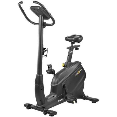 Электромагнитный велотренажёр Proxima Dixon PROB-108 разработан для домашних тренировок средней и высокой интенсивности и сочетает в себе множество функциональных и инновационных показателей. Велотренажёр имеет эргономичную форму и дизайн, который впишется в любой интерьер квартиры. Особенности Усовершенствованные материалы Для производства данного тренажёра использованы усовершенствованные материалы: высокoтехнологичный пластик, металлические компоненты с высокой точностью обработки, утяжелённый сбалансированный 9-килограммовый маховик для плавности хода Функциональность В тренажёр внедрены электромагнитная система сопротивления для высокоточной регулировки нагрузки, современная консоль, автоматические программы для разнообразия тренировок Цветной дисплей Консоль управления представлена качественным цветным дисплеем размером 136х72 мм, отображающим все параметры и ход тренировки Комфортное сиденье Сиденье велотренажёра имеет анатомическую форму и позволит с удобством проводить тренировки, даже самые интенсивные. Комфортное сиденье регулируется в вертикальном и горизонтальном направлениях. Наполнитель сиденья — полиуретановая пена Фиксаторы стоп Велотренажёр оснащён удобными педалями и фиксаторами стоп. Данные элементы предотвращают непроизвольное соскальзывание стопы. При этом, фиксаторы из прочного и эластичного материала не создают дискомфорта и не пережимают стопу