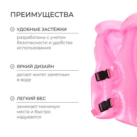 Жилет для плавания «На волне», детский, р. M, 50 х 40 см. Детский надувной жилет помогает оставаться на поверхности воды детям, которые еще не умеют плавать. Изделие обеспечивает плавучесть, что делает его полезным средством для обучения детей плаванию и безопасности в воде. <b> Особенности</b> <ul> <li> Яркий дизайн делает жилет заметным на воде.</li> <li> Изделие не занимает много места в сдутом виде, его удобно брать с собой в отпуск.</li> <li> Модель оснащена удобными застежками типа фастекс.</li> </ul> <b> Параметры</b> <ul> <li> Размер в надутом виде: 50 × 40 см.</li> <li> Размер в сдутом виде: 23 × 18 × 1,5 см.</li> <li> Максимальная нагрузка: 40 кг.</li> <li> Подходит для детей от четырех лет.</li> </ul>