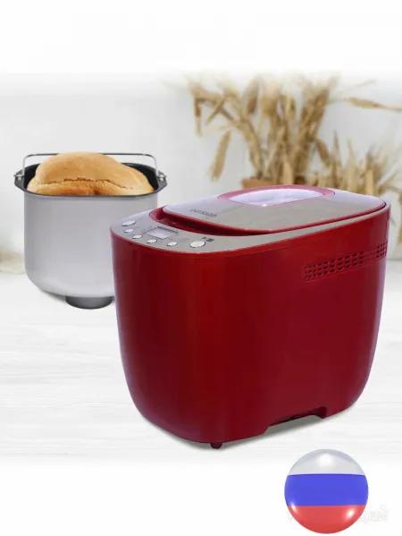 Хлебопечь Oursson BD1023JY Универсальная хлебопечь красного цвета BD1023JY с 12-ю наиболее популярными программами не только испечет к заданному времени вкусный свежий хлеб, но также приготовит джем, йогурт или тесто. В приборе предусмотрены таймер отложенного старта до 13 часов, выбор цвета корочки, функция сохранения выпечки теплой (60 минут). Благодаря смотровому окошку видны все процессы приготовления хлеба. Хлебопечь снабжена съемной чашей, которая имеет антипригарное покрытие. Емкость легко извлекать при помощи ручки и без труда очищать от остатков пищи. Ее компактность порадует любую хозяйку. Модель изготовлена из прочного, устойчивого к износу и нагреву пластика. Материал прослужит длительный срок без деформации и повреждений. Основные характеристики Бренд Oursson Цвет товара красный Максимальный вес выпечки 900 г Мощность 600 Вт Форма выпечки буханка Количество программ выпечки 12 Программы варенье, замес теста, йогурт, кекс, пшеничный хлеб, хлеб из муки грубого помола Особенности выбор цвета корочки, поддержание температуры, таймер Максимальное время установки таймера 13 ч Число тесто мешателей 1 Материал корпуса пластик Дополнительные характеристики Дополнительная информация съемная чаша с антипригарным покрытием Ширина 250 мм Глубина 370 мм Высота 270 мм Вес 4.3 кг г. Волгоград